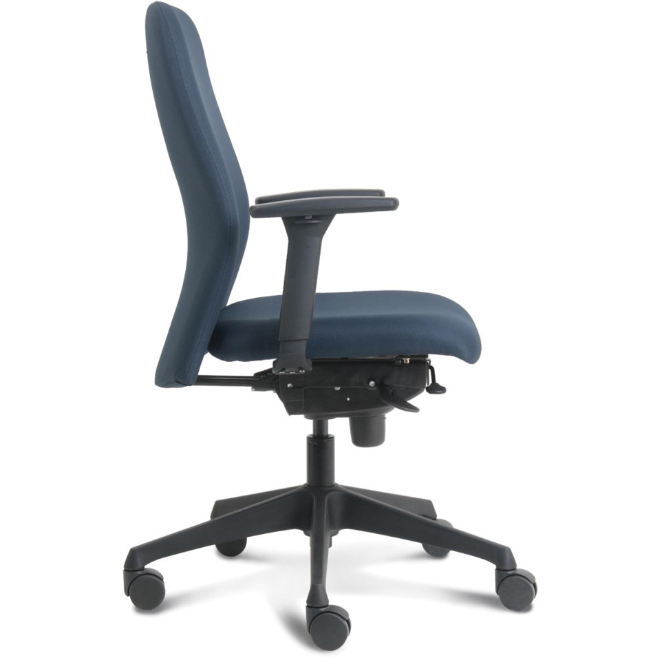 - Ergonomic high backrest with integrated lumbar support encourages a healthy posture during prolonged work sessions.