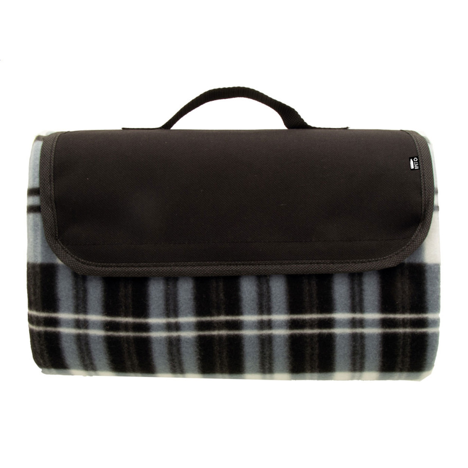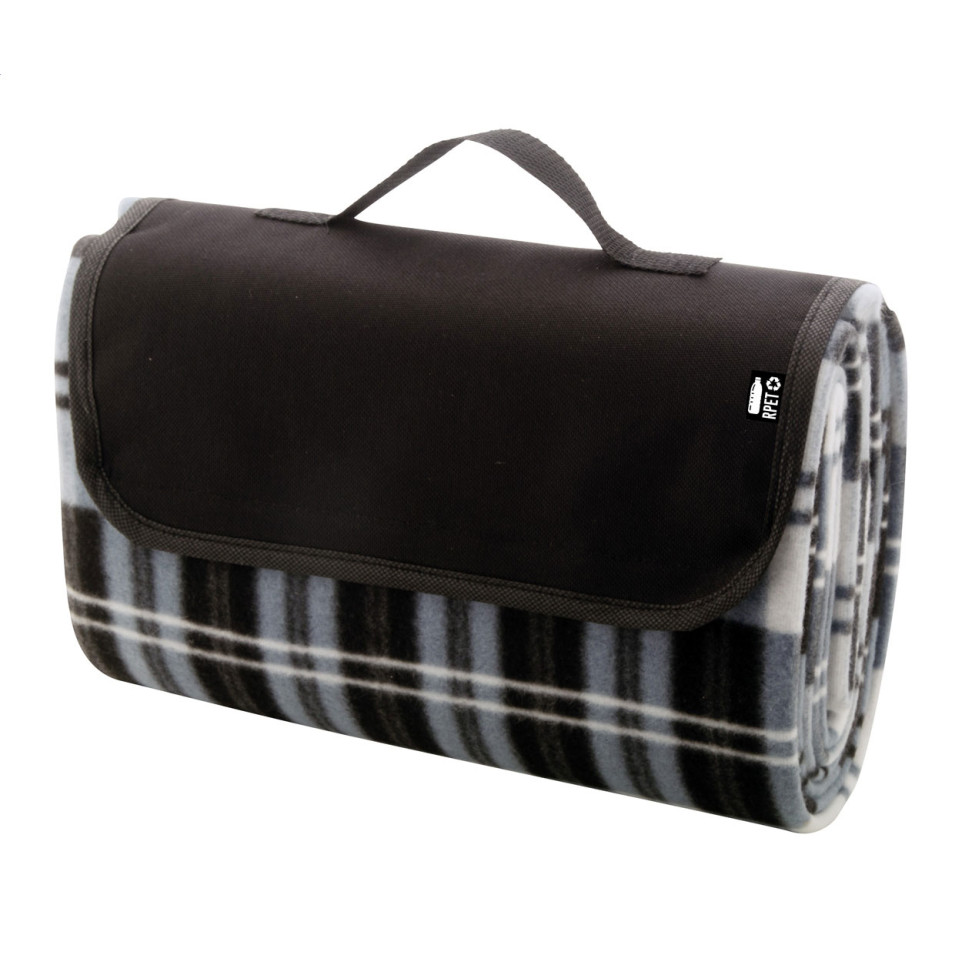 The Angama black RPET picnic blanket is a foldable outdoor accessory perfect for picnics, outdoor events, and beach outings. Combining functionality with eco-conscious design, it offers comfort and convenience for all your outdoor leisure activities.