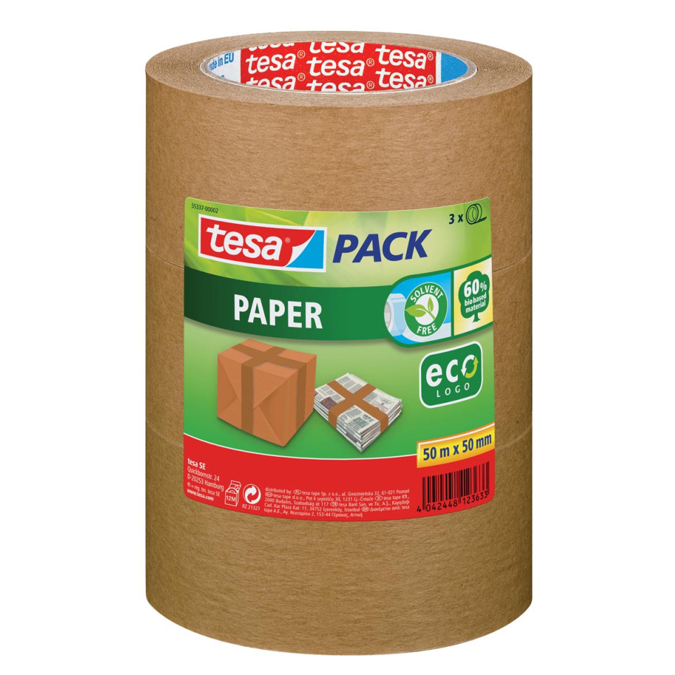Tesa Eco-Friendly Kraft Paper Adhesive Tape 50 mm x 50 m Brown Pack of 3 pieces