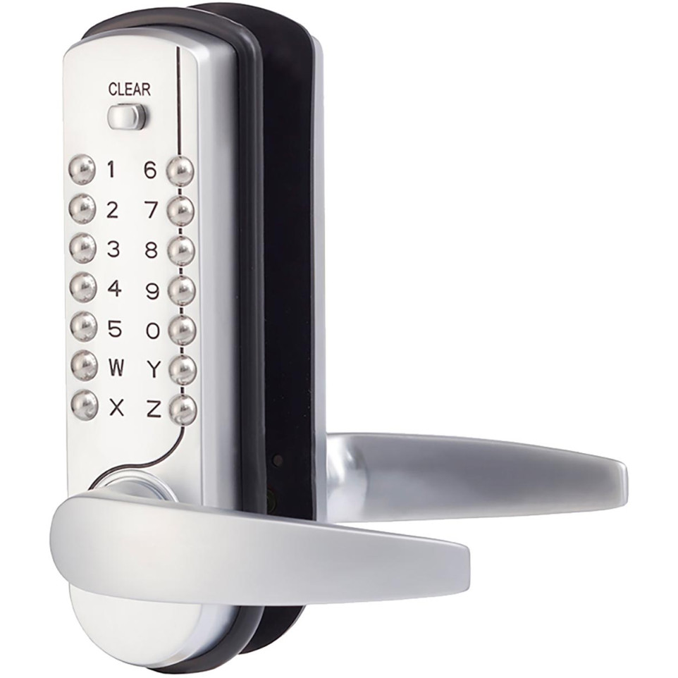 Users input their programmed code to operate the handle and unlock the door; upon closing, the lock automatically engages. On the inside, the door can always be opened using the handle, offering both security and convenience. The code can be reprogrammed easily as needed.