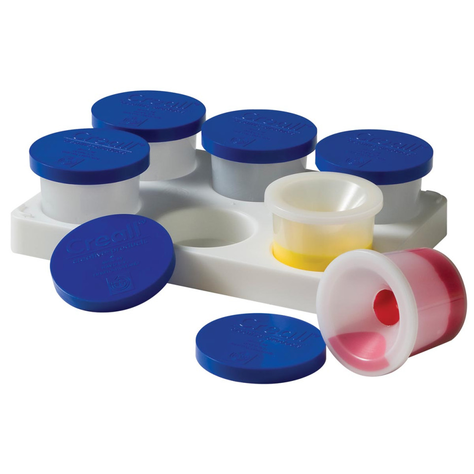The Creall antiverse paint cup (125 ml) is designed to prevent paint spills during use or accidental tipping. Its curved inner rim effectively keeps liquid paint inside, making it ideal for classrooms, studios, and workshops.