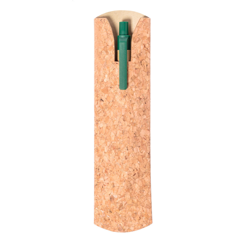 Natural cork pen case designed to hold a single pen, ideal for everyday office use or as an eco-conscious accessory for meetings and conferences.