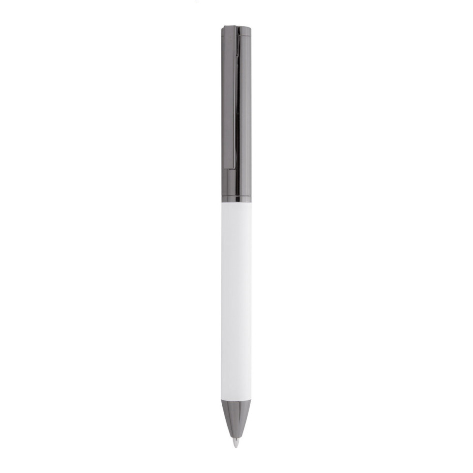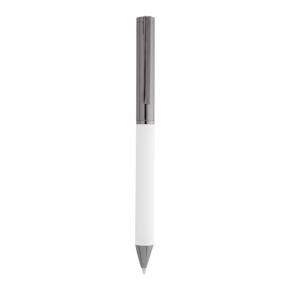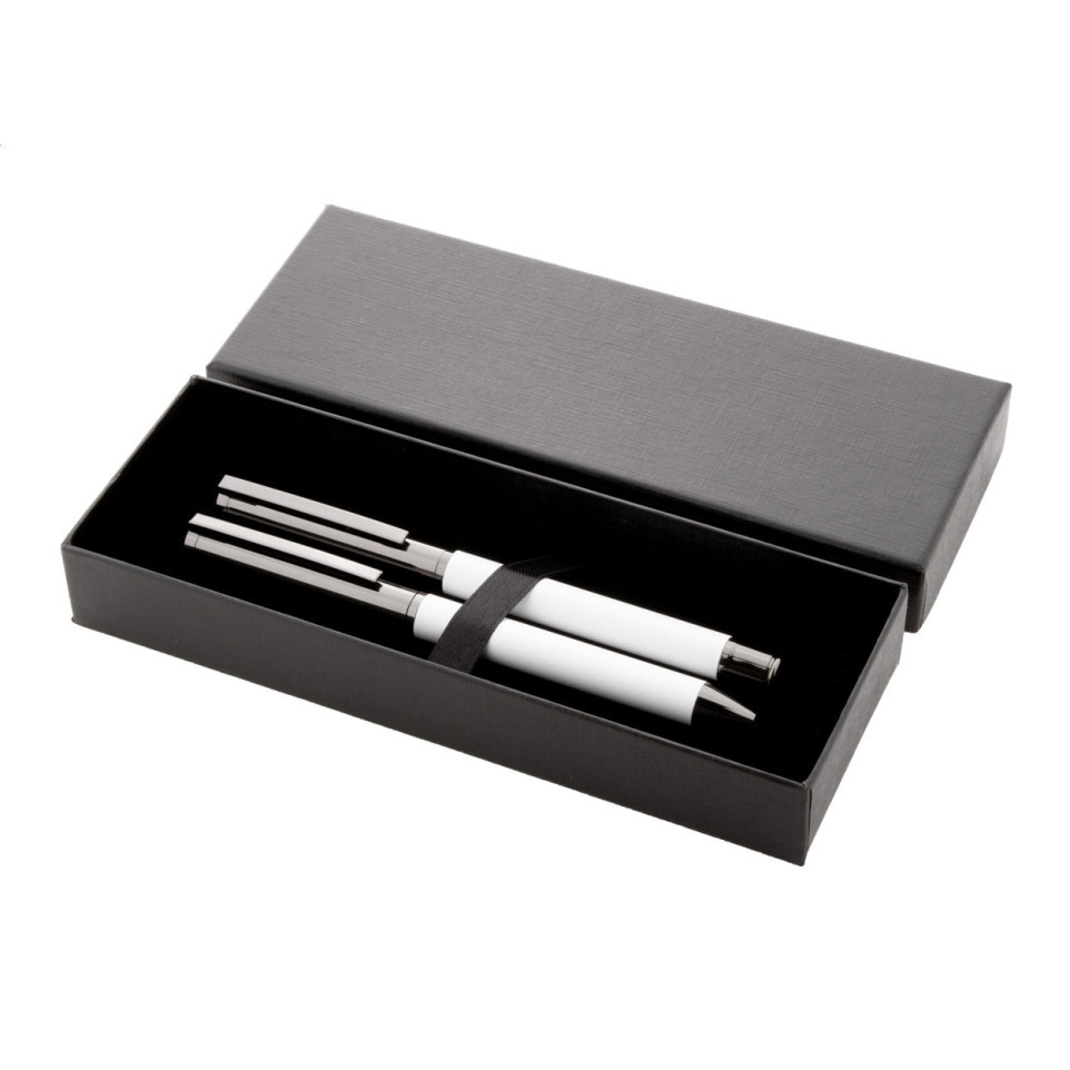 What are the product specifications? The Carrol pen set features metal construction with a white finish. The gift box measures 176×65×27mm, and the complete set weighs 104g. The ballpoint pen has a 0.7mm ball size.
