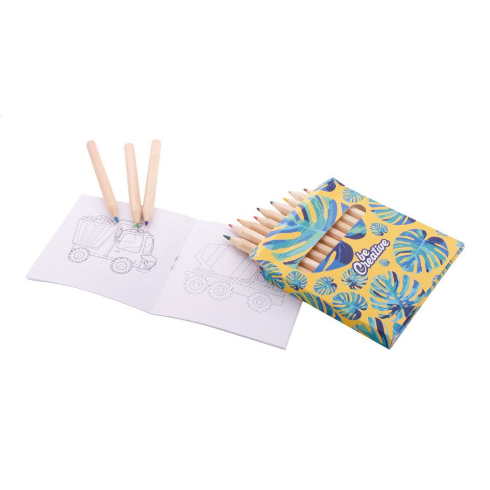 View products in the same categoryColoxil 12 white custom colouring set inspires creativity with 12 wooden colored pencils and a themed colouring book, all packaged in an attractive full-color printed paper box. Perfect for young artists and educational settings.