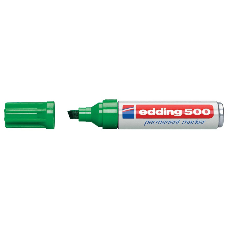 The Edding e-500 green permanent marker is designed for reliable marking on multiple surfaces and is ideal for use in offices, workshops, and industrial settings.