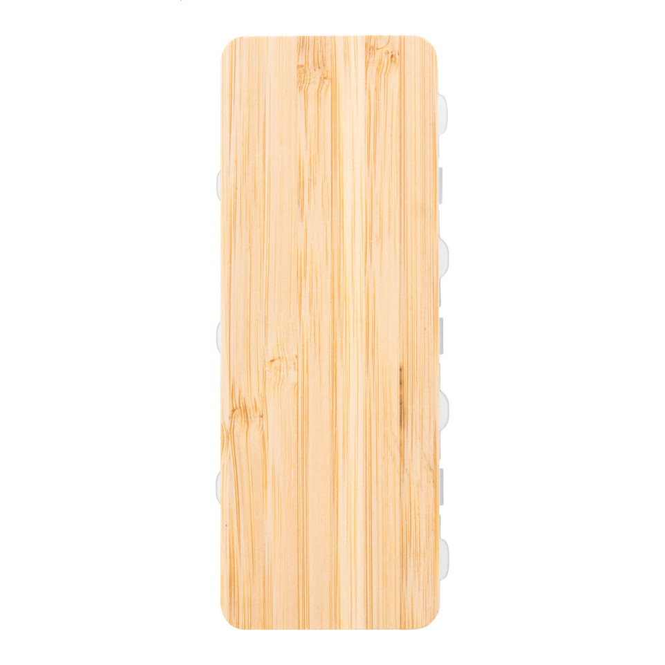 Weekly pillbox made from bamboo and PP plastic, designed in a white/natural finish. Features seven compartments for organizing daily medication conveniently at home or while traveling.