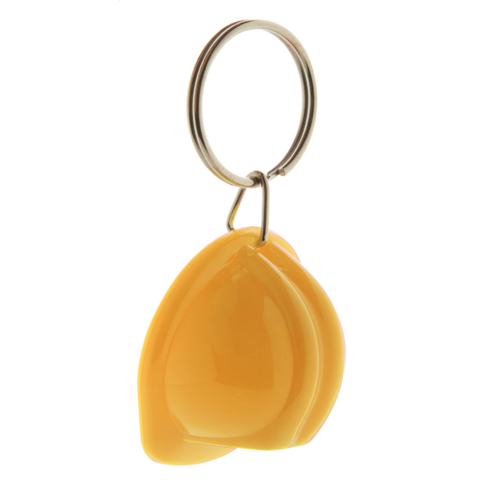 Bobby yellow keyring is a compact plastic accessory shaped like a safety helmet, ideal for keeping keys organized while adding a distinctive touch. Its bright color and unique design make it suitable for daily use, especially in work or safety-related contexts.