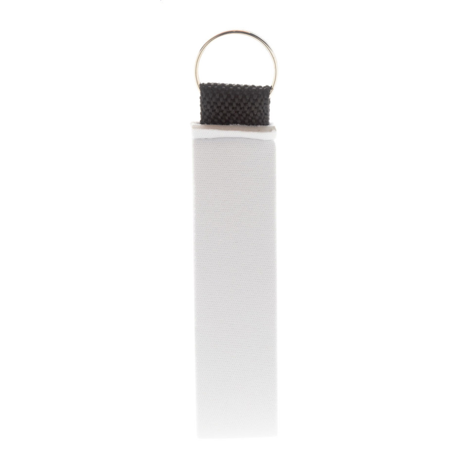 Strappy white custom RPET keyring made from durable RPET neoprene, designed for everyday use and promotional visibility. Ideal for keeping keys secure and your brand top of mind at home, in the office, or on the go.