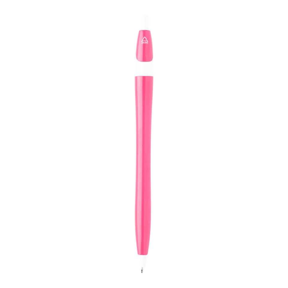 Raball pink RABS ballpoint pen is a push-action pen made of recycled ABS plastic, featuring a blue ink refill. Its slim, 10×145 mm design fits easily into pockets or pen holders, suitable for daily office and promotional use.