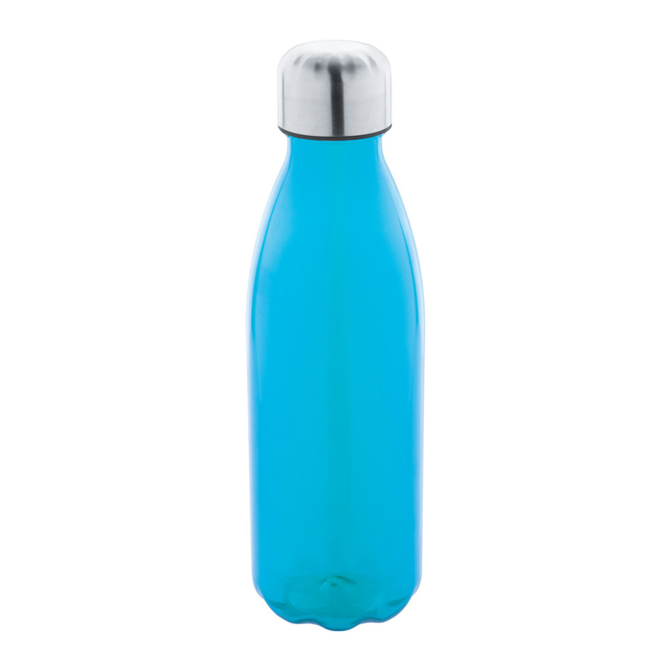 Eco-friendly Colba light blue RPET bottle with a sleek, modern design. This 600ml bottle features a stainless steel cap and is perfect for everyday hydration while supporting sustainability efforts.