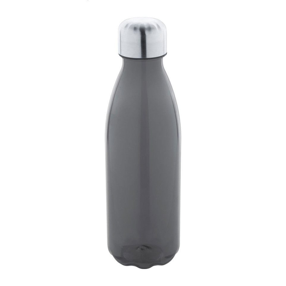 The Colba black RPET bottle is a 600 ml sports bottle crafted from recycled PET with a stainless steel cap. BPA-free and lightweight, it is designed for daily hydration at the gym, in the office, or on outdoor activities. Not suitable for carbonated drinks.