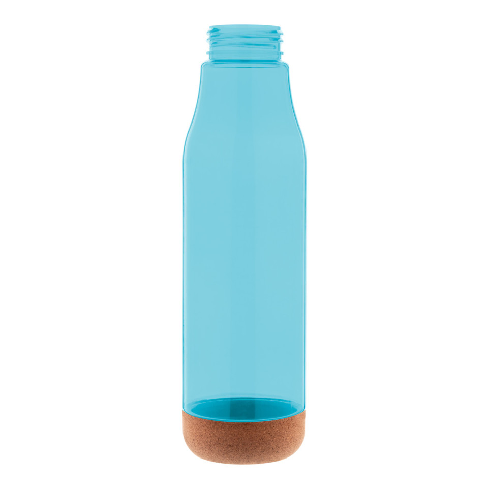 The Cortex light blue RPET bottle is a 720 ml sport bottle designed with a natural cork base and a convenient PP plastic carry lid. Ideal for daily hydration at the gym, the office, or on outdoor activities. Not suitable for carbonated drinks.