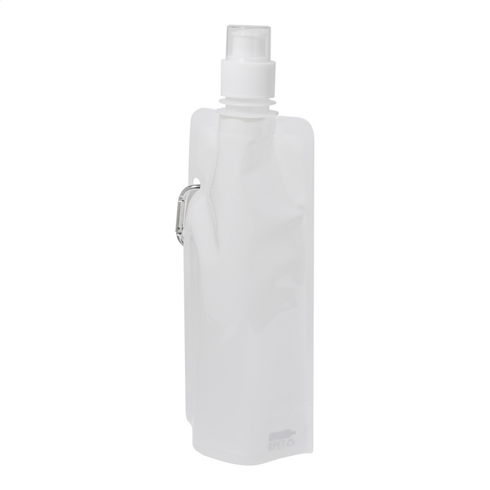 Foldable RPET sport bottle holds 500 ml, features a drinking lid and aluminium carabiner. Ideal for active lifestyles, it collapses for easy storage during hikes, gym sessions, or travel.