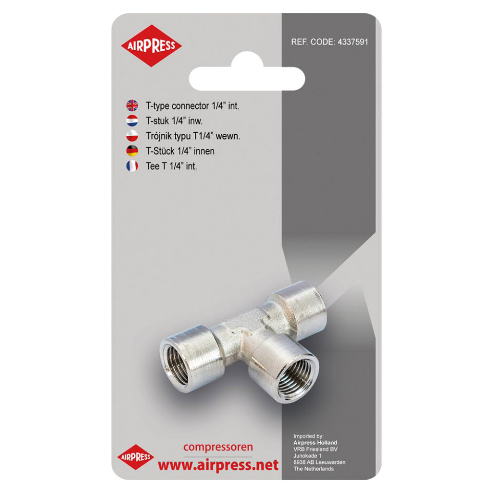 The 3-way elbow connector 1/4" is a pneumatic fitting designed for efficient distribution and redirection of compressed air within pneumatic systems. Ideal for professional, industrial, or workshop environments requiring flexible circuit configuration.
