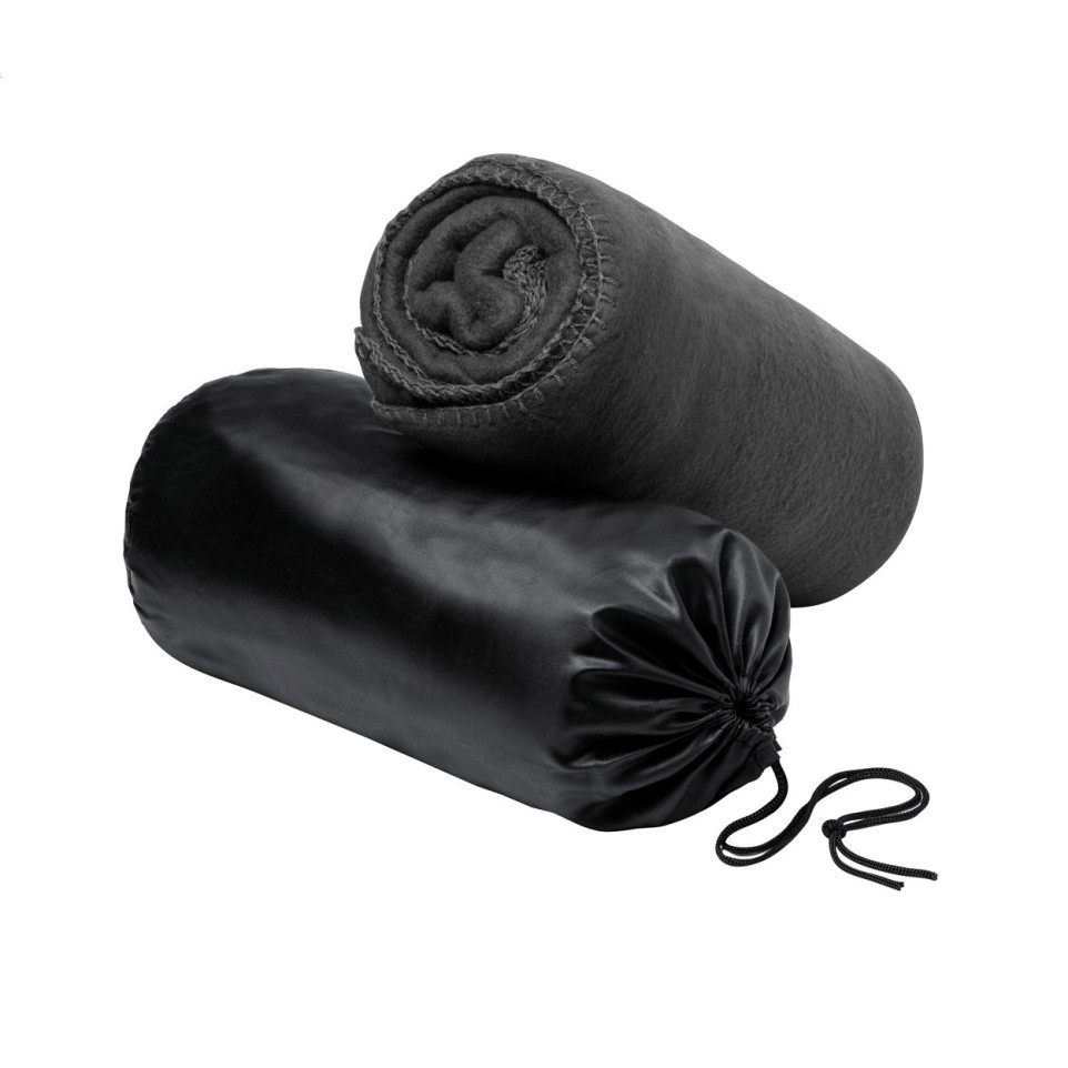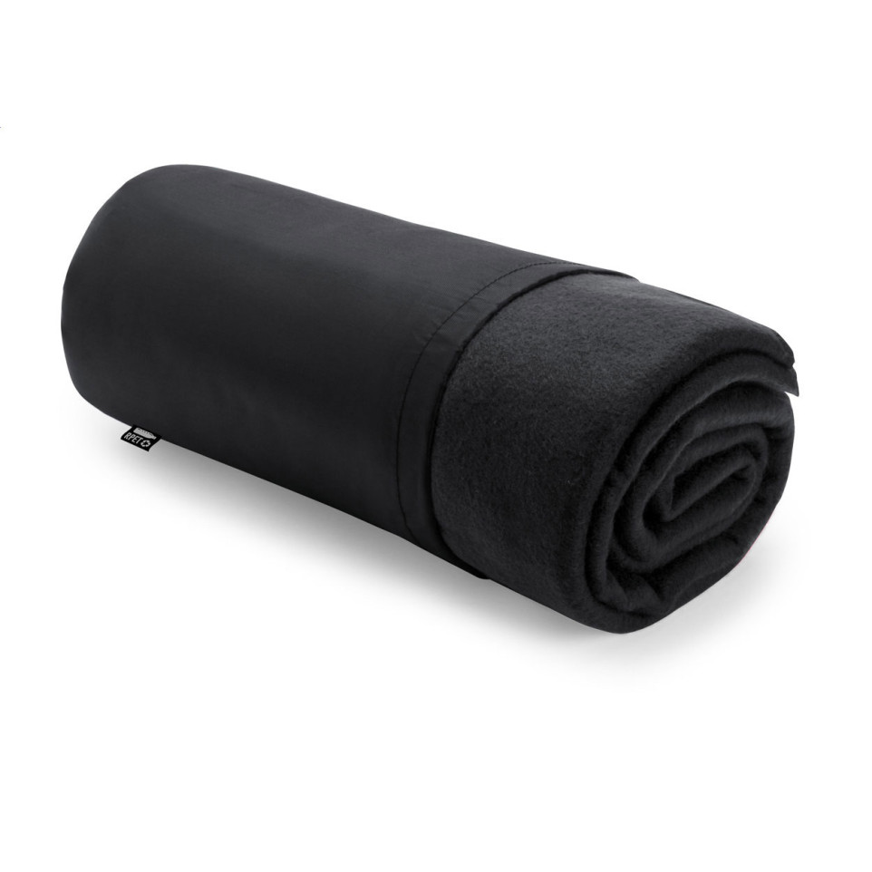 The Nanda black RPET polar blanket is a soft, lightweight fleece blanket designed for versatile indoor and outdoor use. It comes with a convenient carry case, making it ideal for travel, events, or lounging at home.