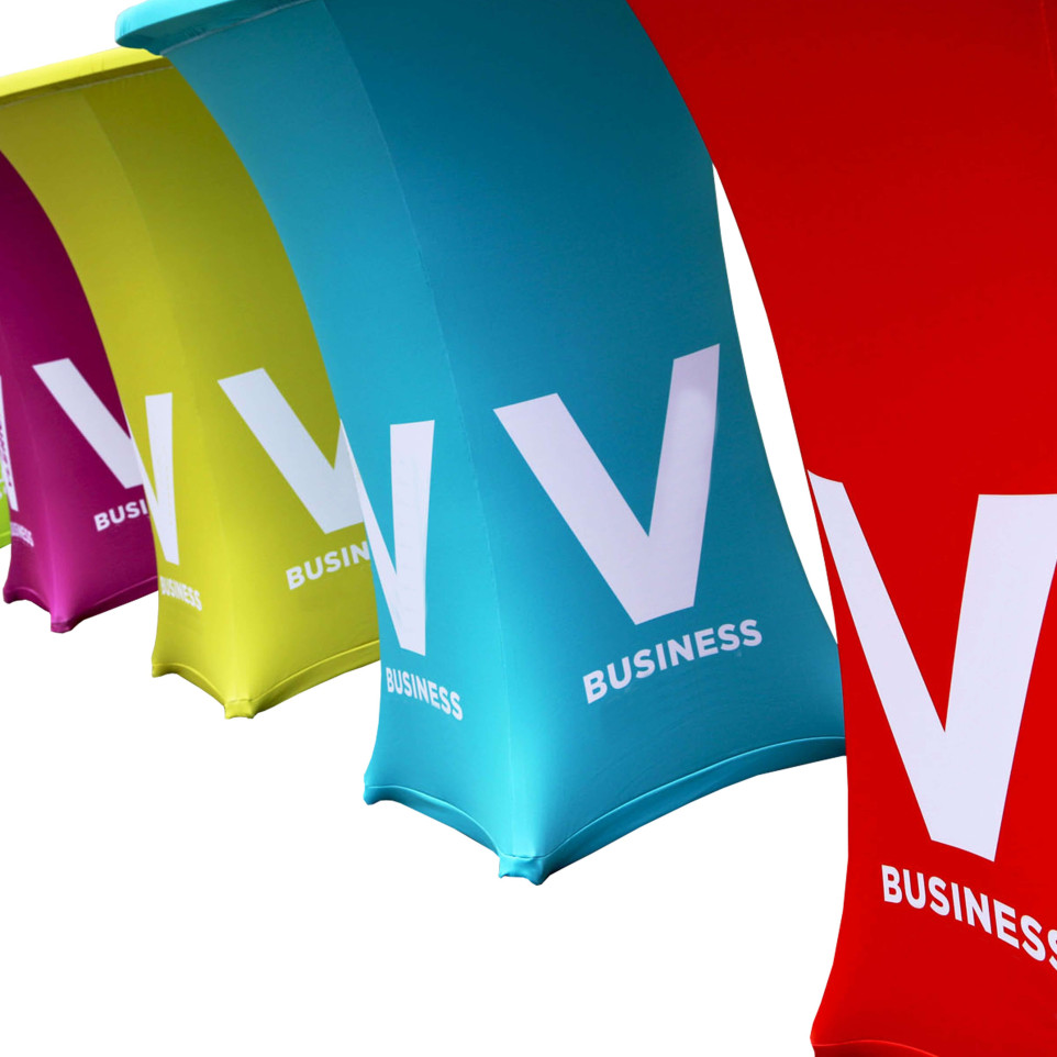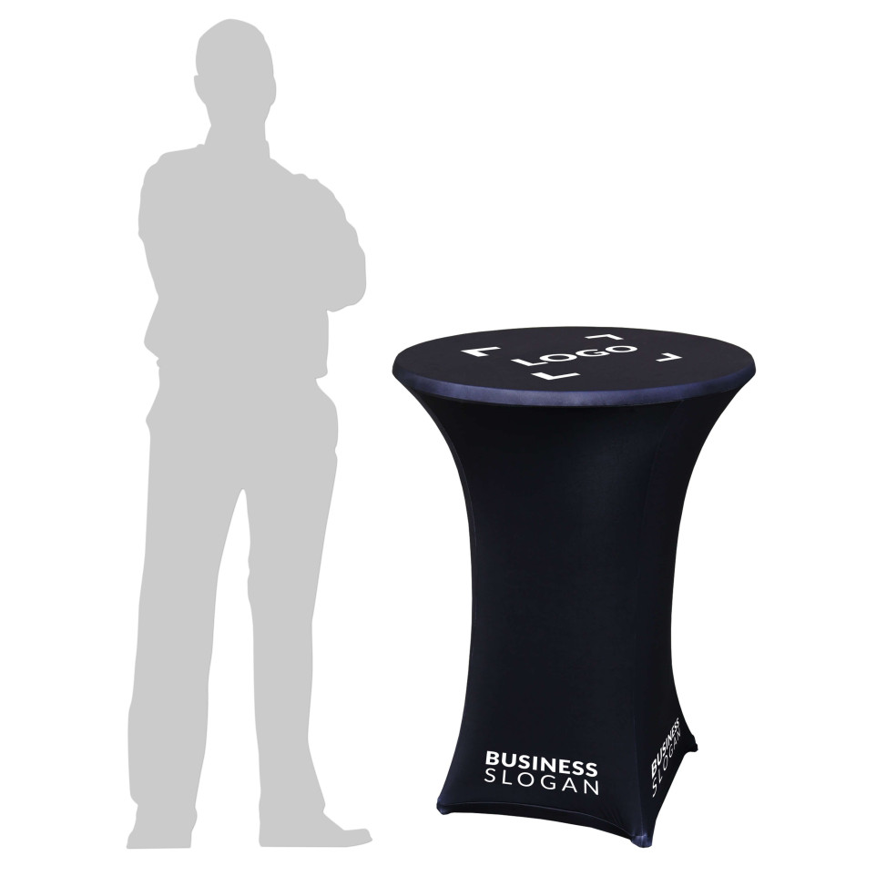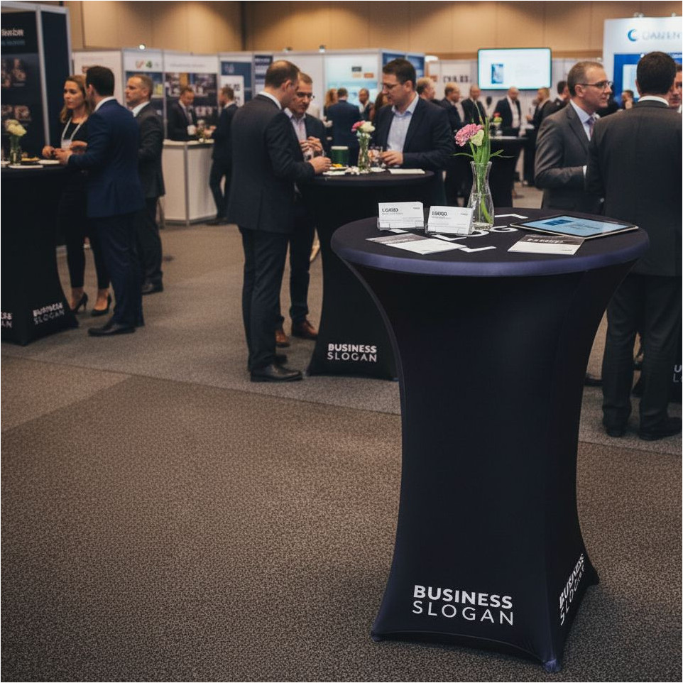 A1. Fully brandable cover: The custom polyester cover lets you apply your exact colors, logo, and visuals, so your bar table instantly matches your stand and strengthens your brand presence at fairs and exhibitions.