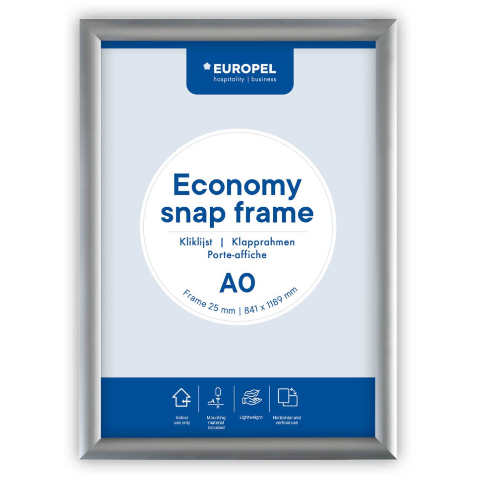 The Europel Economy snap frame is designed to securely display and protect A0-size posters in professional settings such as offices, corridors, and public areas. Suitable for quick poster changes where clear visibility is required.