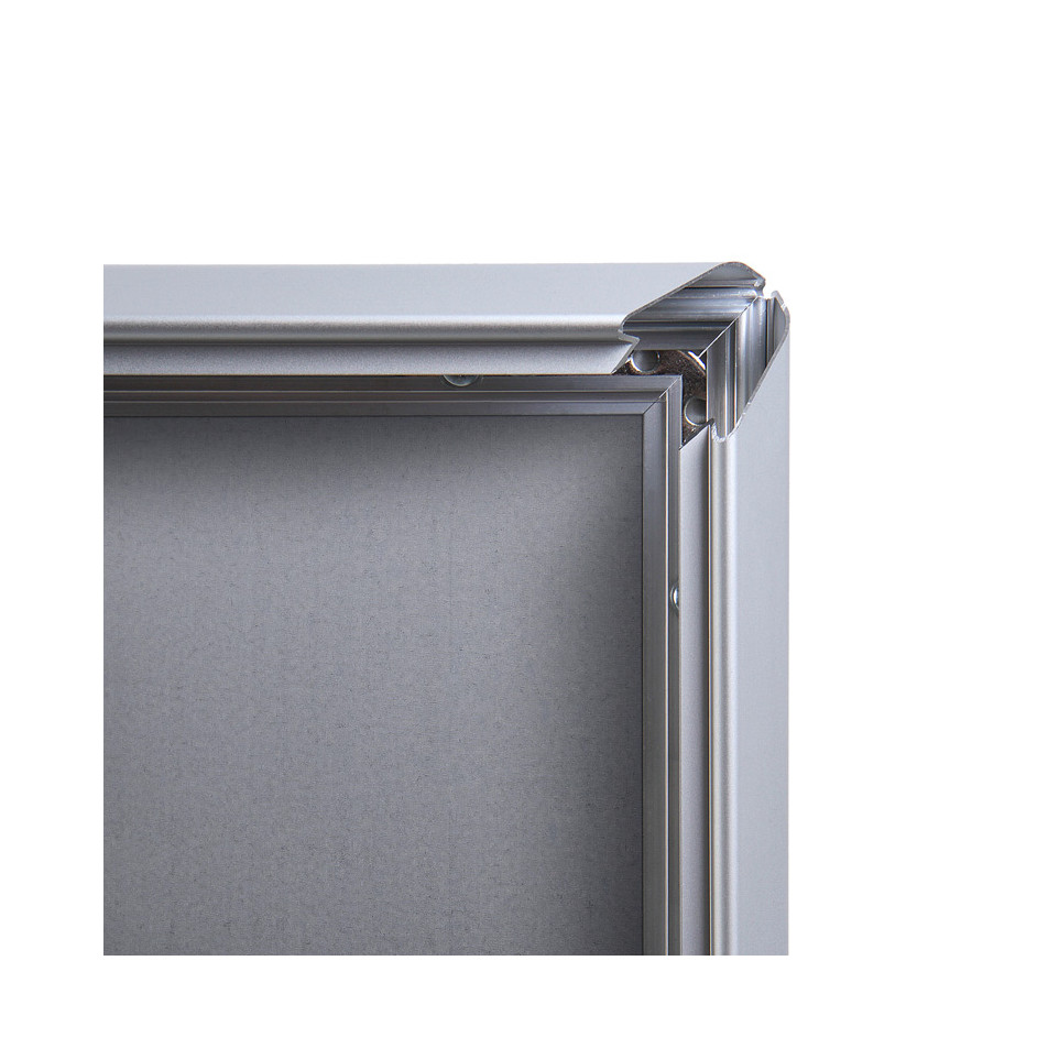 The frame’s user-friendly design allows quick poster changes. Simply snap open all sides of the profile, insert your new poster into place behind the protective foil, and snap it shut securely—all while mounted on the wall!