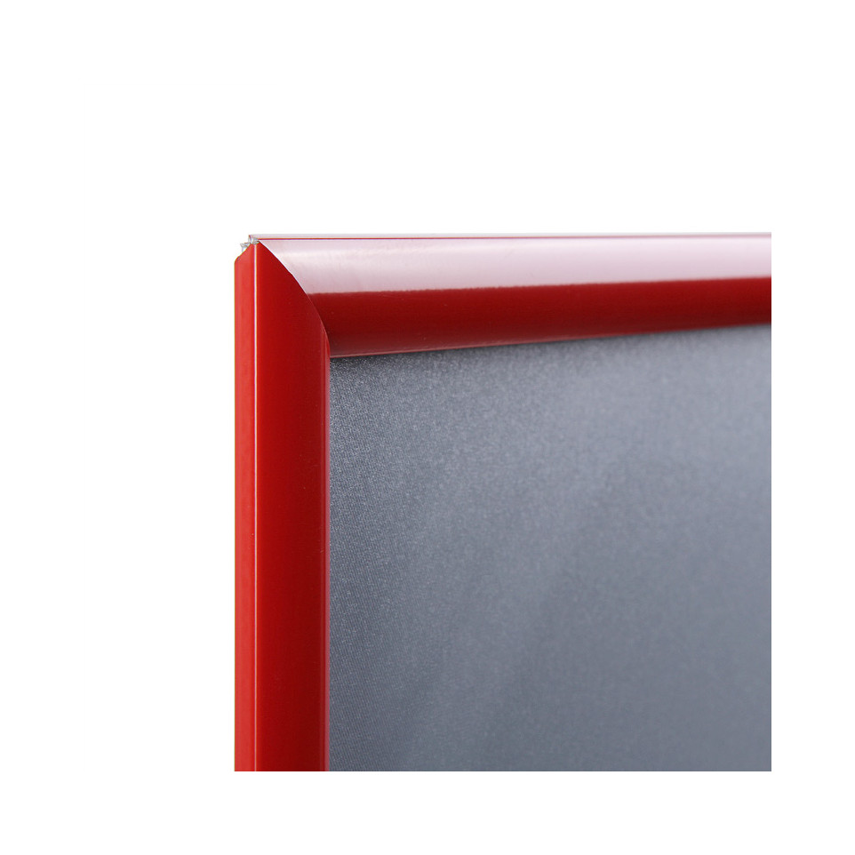 The 25 mm Snap Frame with mitred corners in A4 red is perfect for displaying posters and announcements in retail spaces, offices, or public areas, ensuring visibility and easy poster updates.