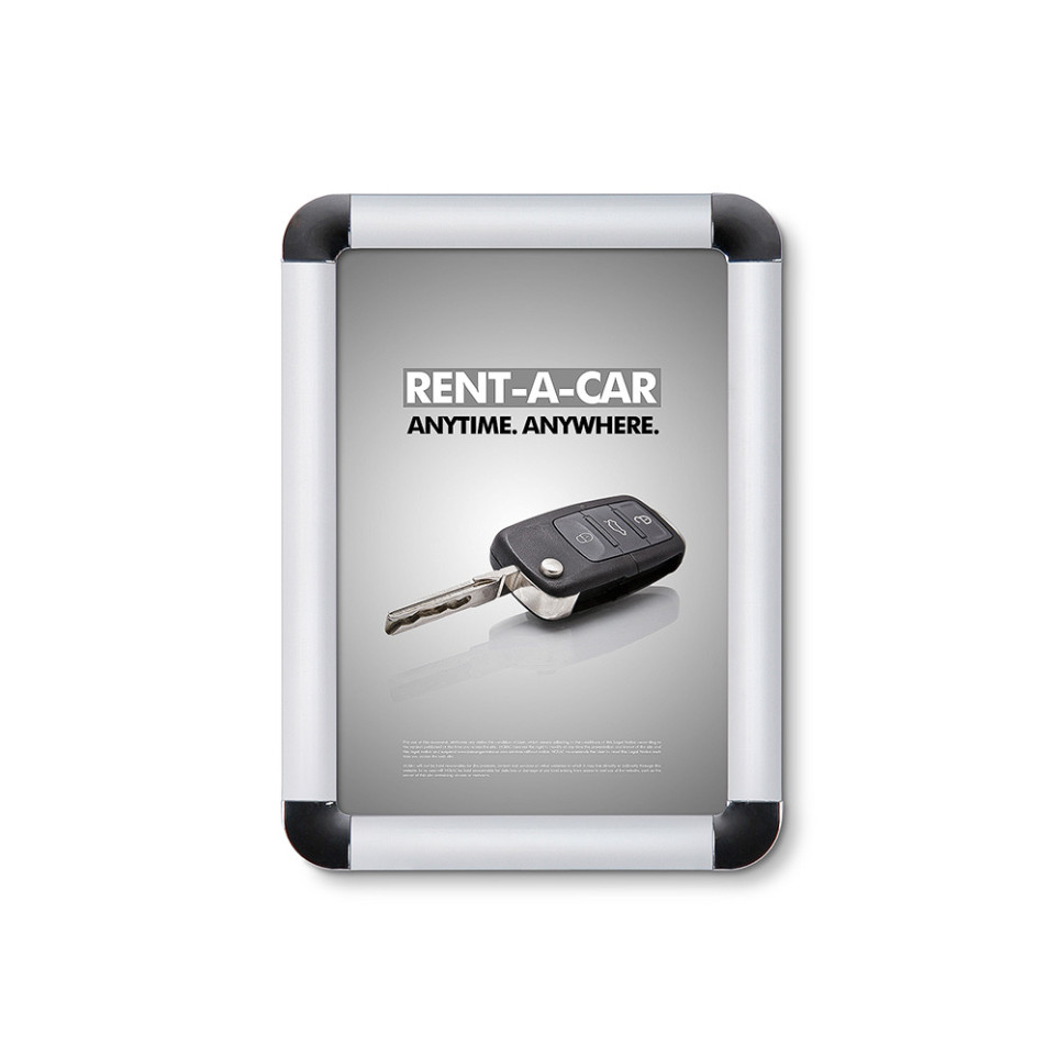 The 20 mm Snap Frame with round corners in A5 format is ideal for displaying posters and promotional materials in offices, shops, or public spaces, ensuring easy visibility and professional presentation.