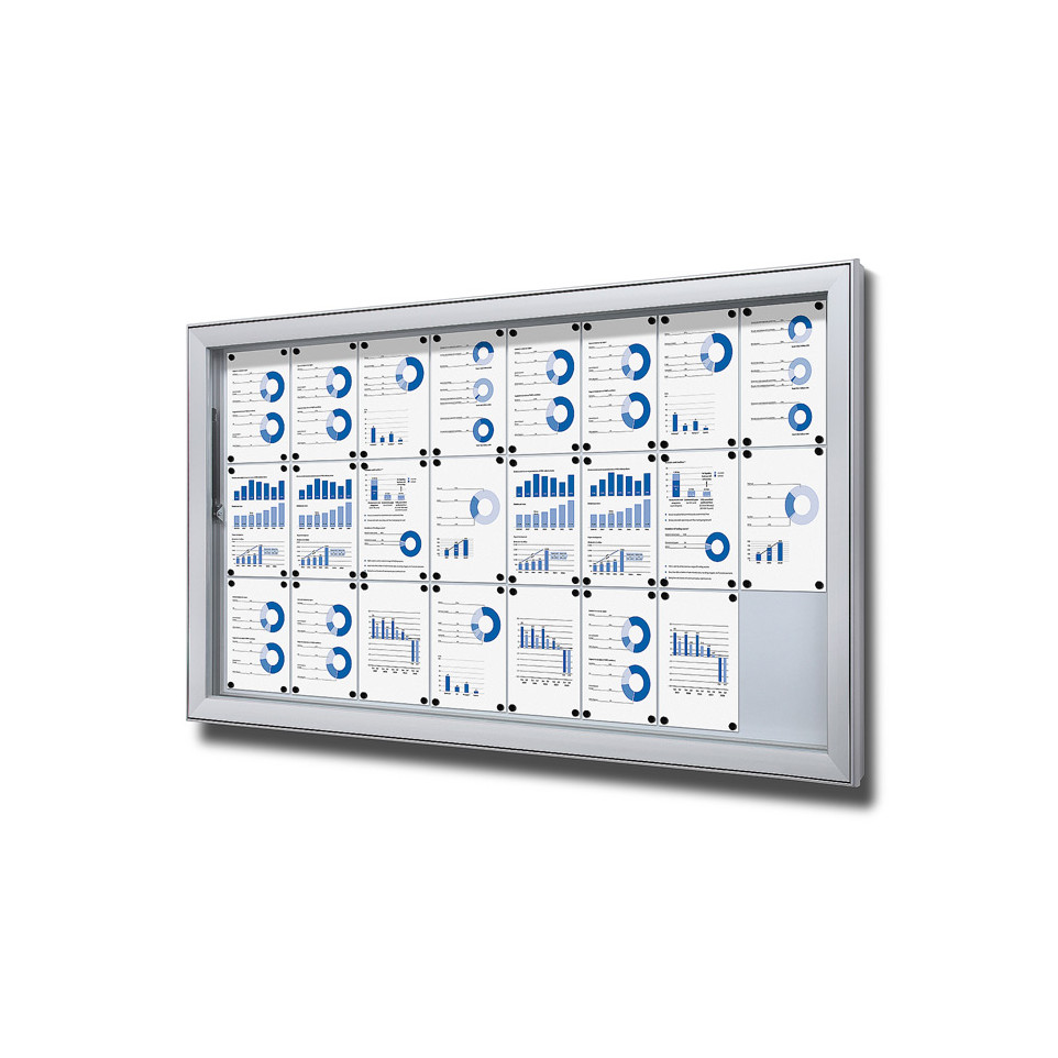 This extra-deep outdoor lockable showcase is designed for securely displaying posters, leaflets, or thicker items like books in public spaces such as schools or municipalities.