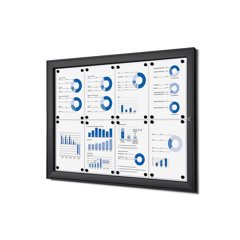 AdvantagesEasily mount the showcase on walls using the included fixing kit. Open the lockable hinged door with one of the provided keys to insert your posters or documents securely using magnets or pins. Lock it again to ensure safety when finished.