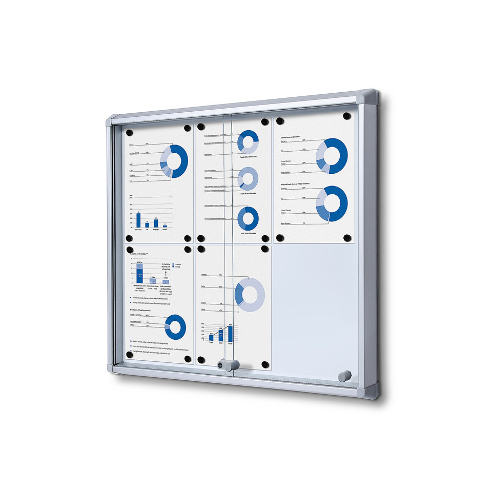 Securely display up to six A4 posters in indoor environments with this lockable showcase featuring sliding doors. Ideal for offices, schools, and public spaces, it protects your content while offering easy access for quick updates.
