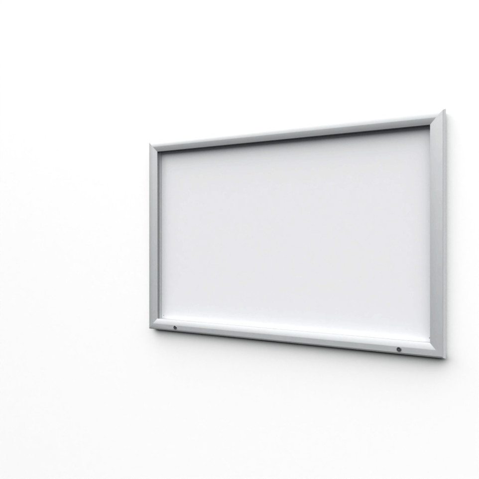 The integrated gas spring system enables smooth opening and keeps the door securely held open during poster changes.