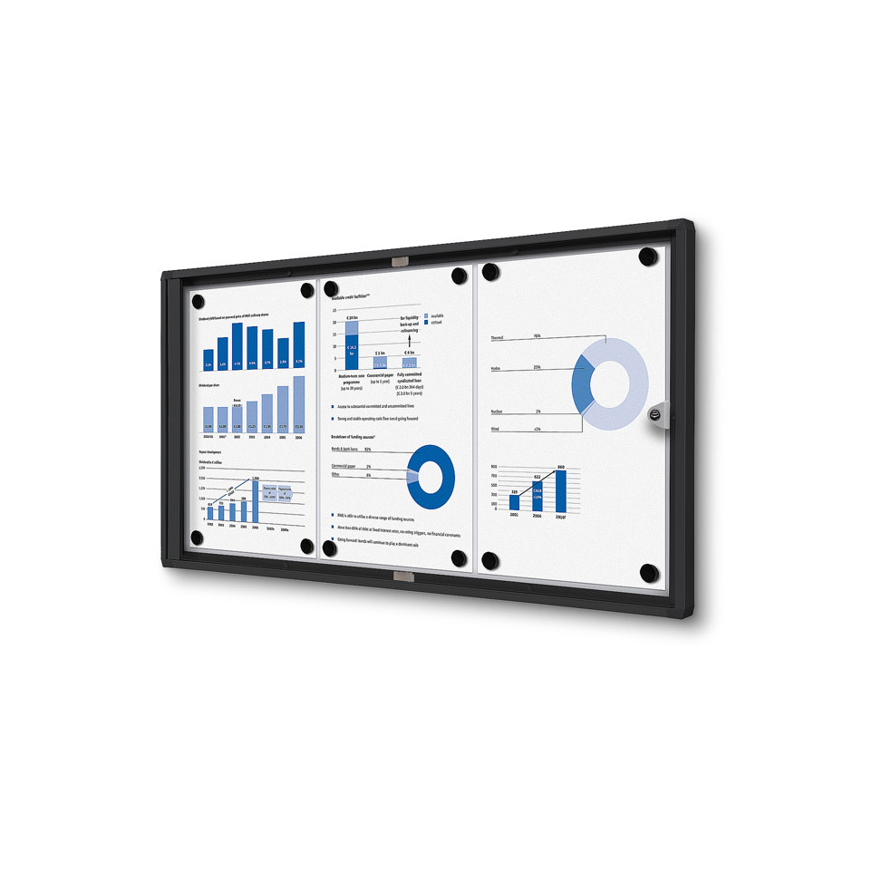 The Indoor Lockable Showcase Economy Black 3x A4 is ideal for securely displaying posters, notices, and signage in indoor environments such as offices, schools, or retail spaces. It ensures content visibility while keeping it protected.