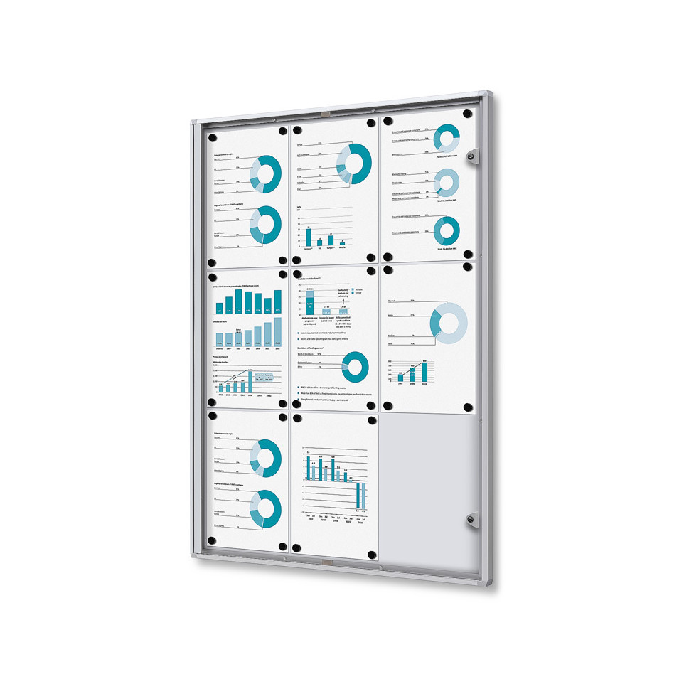 The Indoor Lockable Showcase Economy B1 Fire Rated 9x A4 is designed for securely displaying posters or notices in indoor public spaces such as offices, schools, or retail environments.