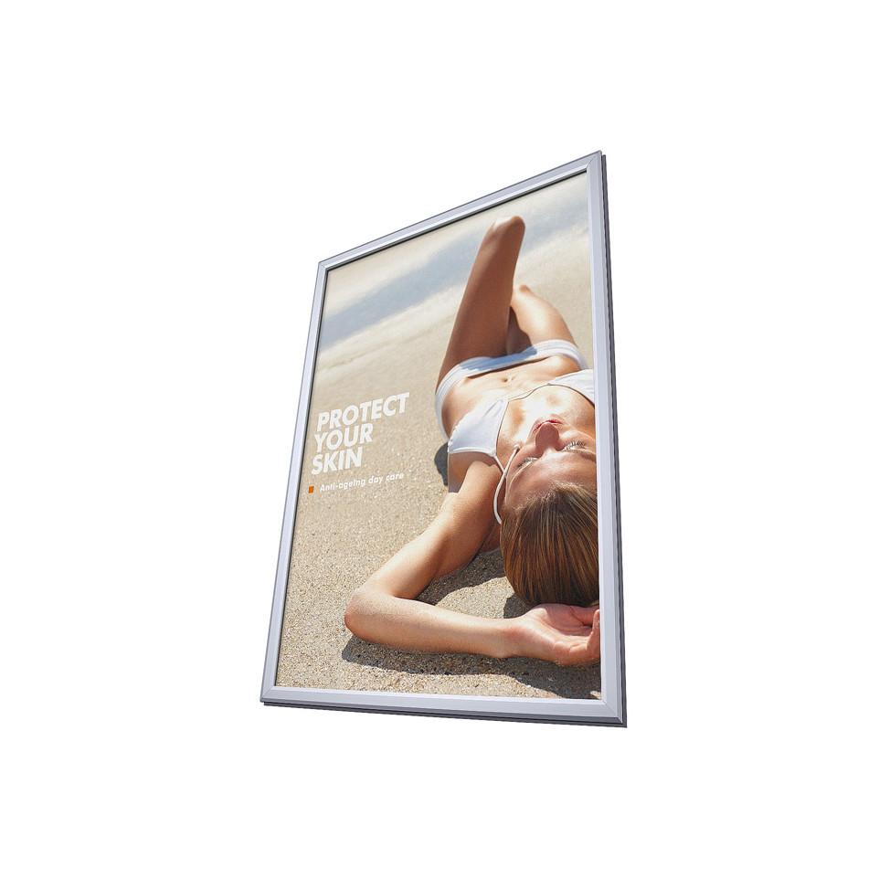The Window Snap Frame 25 mm Mitred Corners A0 is a professional poster holder designed for window display applications. Presenting A0-size graphics, its slim profile and clean corners make it suitable for use in retail, office, or commercial environments.