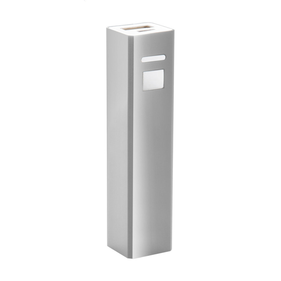 The Balzur silver USB power bank is a sleek aluminum portable charger with 2200 mAh capacity, perfect for emergency charging of mobile devices when you're on the go or away from power outlets.