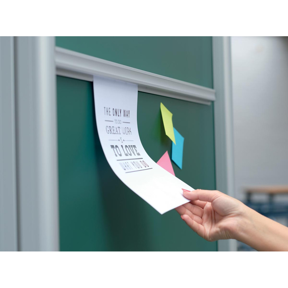 The Jalema Grip presentation rail, 120 cm with magnetic mounting, is designed for displaying and organizing documents, drawings, memos, or plans efficiently in offices, schools, meeting rooms, or production areas.