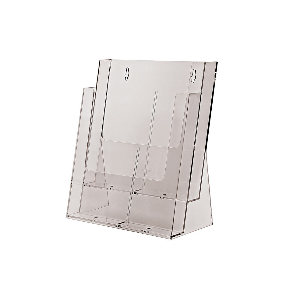 AdvantagesSelect your preferred setup—place the holder on a desk/countertop using its base stand or mount it to a wall using compatible fixtures. Insert your brochures into each tier for easy accessibility by visitors or clients.
