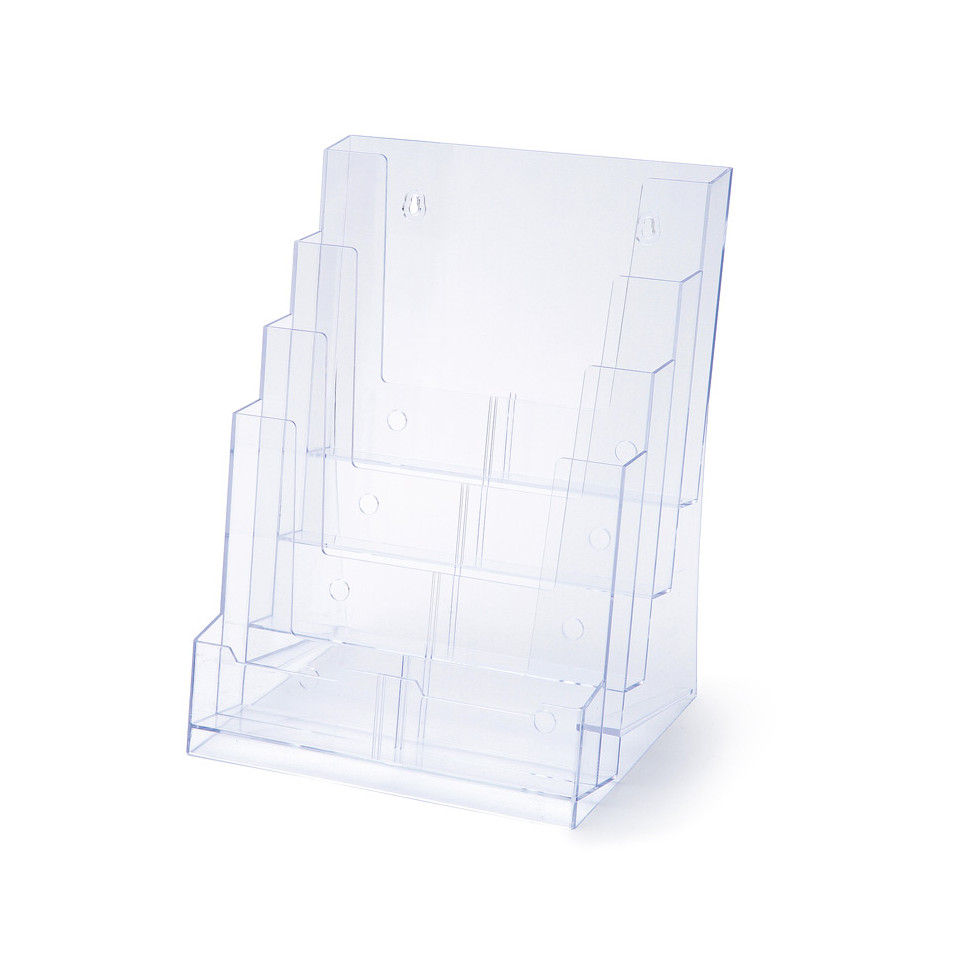 AdvantagesThe holder can be placed on a counter/desk or mounted securely to a wall using suitable fixtures. Simply insert your A4 brochures into the deep pockets for an organized and professional display setup wherever needed.