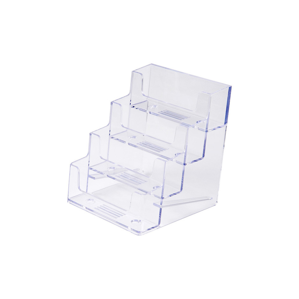 This 4 Tier Landscape Business Card Holder is a clear, compact counter display designed to organize and showcase up to four sets of business cards in a professional setting. Ideal for reception desks, exhibition tables, or retail counters.