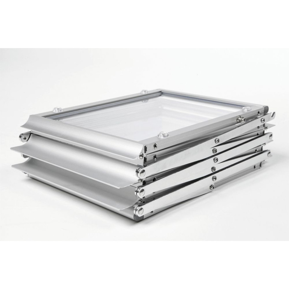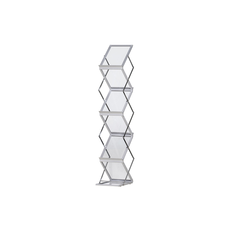 The holder can be set up within seconds by extending the zigzag structure upward and locking it into place. Insert your brochures into its six clear trays to instantly create an organized display system that enhances visibility at any location or event setting.