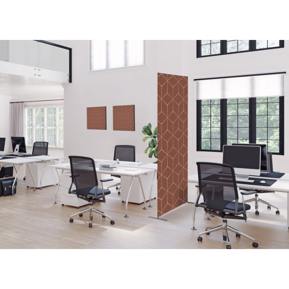 Enhance your home or office space with the Textile Wall Decoration SET A2 Hexagon Rust I17, a stylish and modern printed fabric decorative panel ideal for creating personalized wall displays.