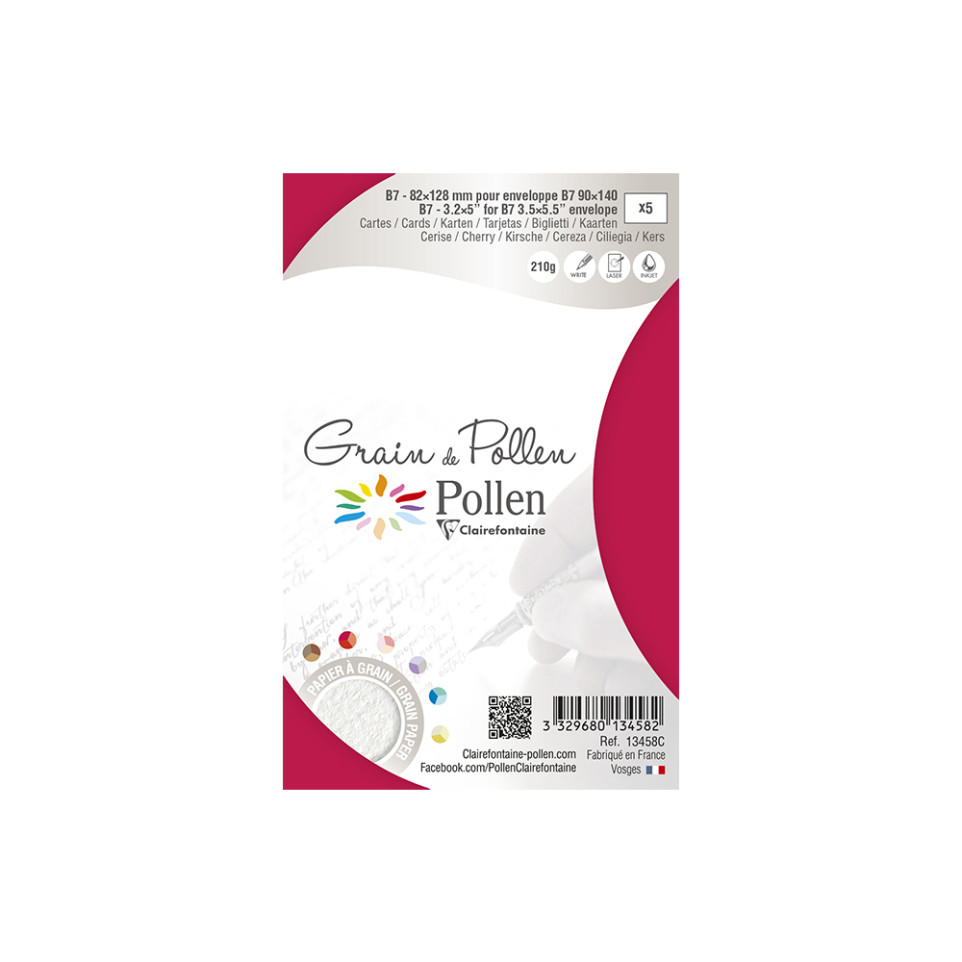 Amphora 82x128mm Grain de Pollen Card, 210g The grain papers in the Pollen range are available in 19 trendy colours. The elegance of these papers resides in their finely grained texture They will bring a refined and subtle touch to your writings and all your creative desires. Can be written and used with inkjet and laser printers Acid free