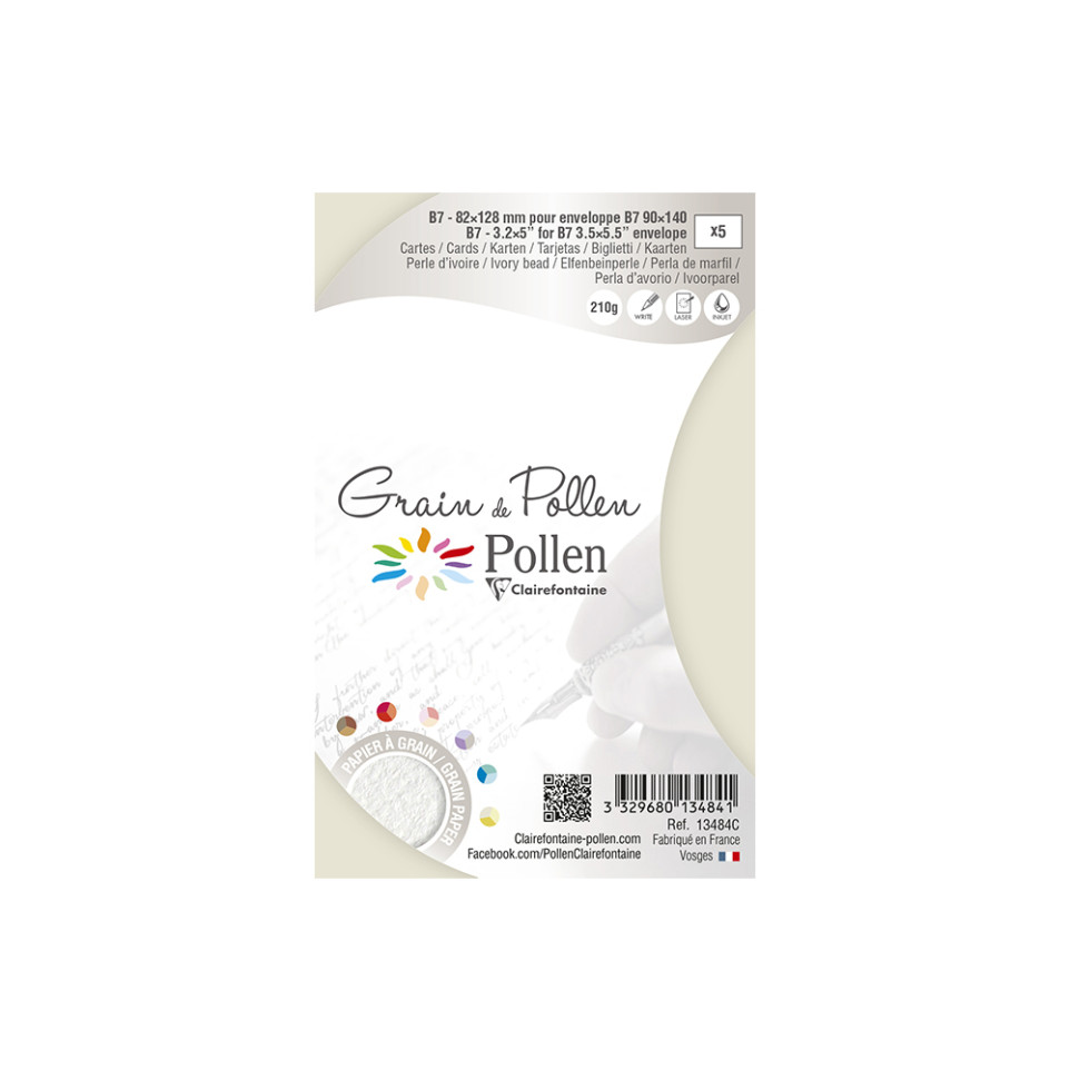 Amphora 82x128mm Grain de Pollen Card, 210g The grain papers in the Pollen range are available in 19 trendy colours. The elegance of these papers resides in their finely grained texture They will bring a refined and subtle touch to your writings and all your creative desires. Can be written and used with inkjet and laser printers Acid free