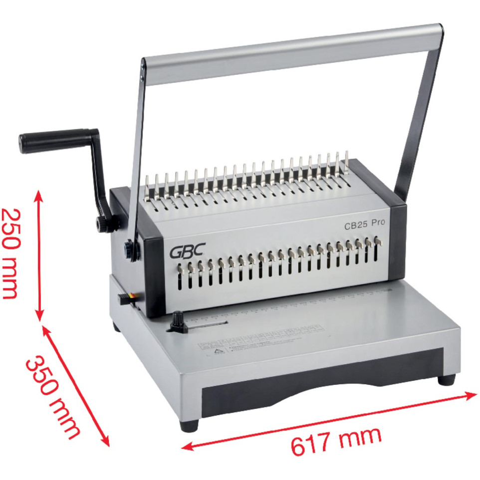 The GBC CombBind CB25 Pro is a manual binding machine designed for heavy-duty use, ideal for creating professional documents in offices or print shops.
