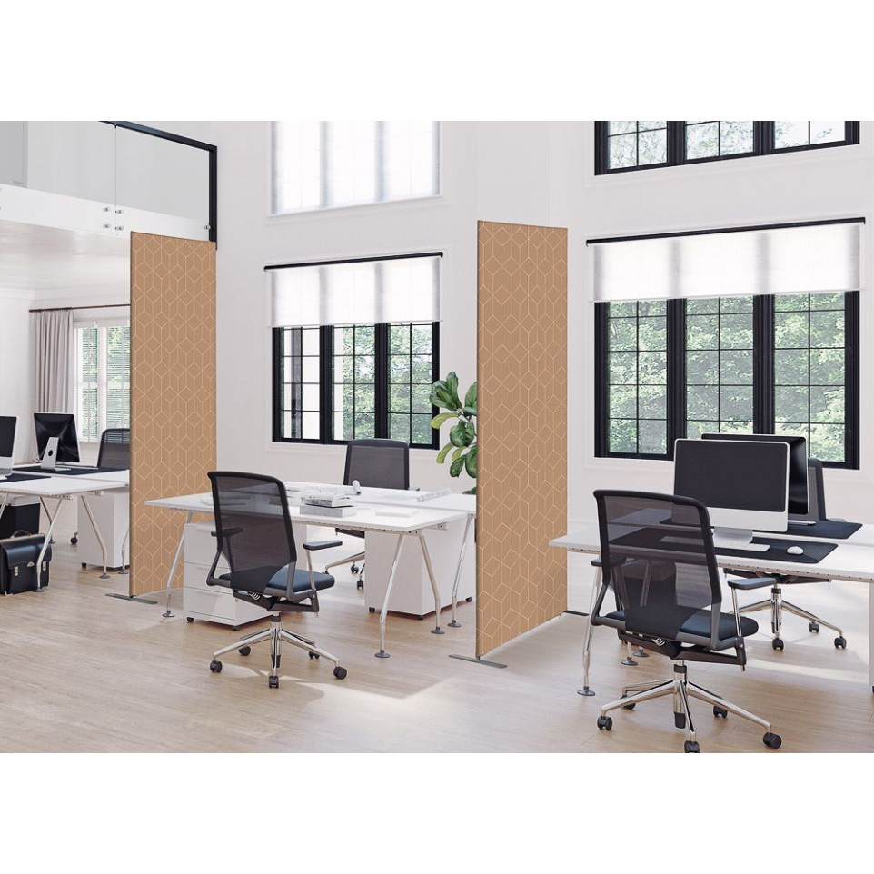 The Textile Room Divider Deco 85-200 Double Hexagon Beige is a ready-to-use decorative partition that enhances privacy and adds style to spaces like offices, restaurants, or living areas.