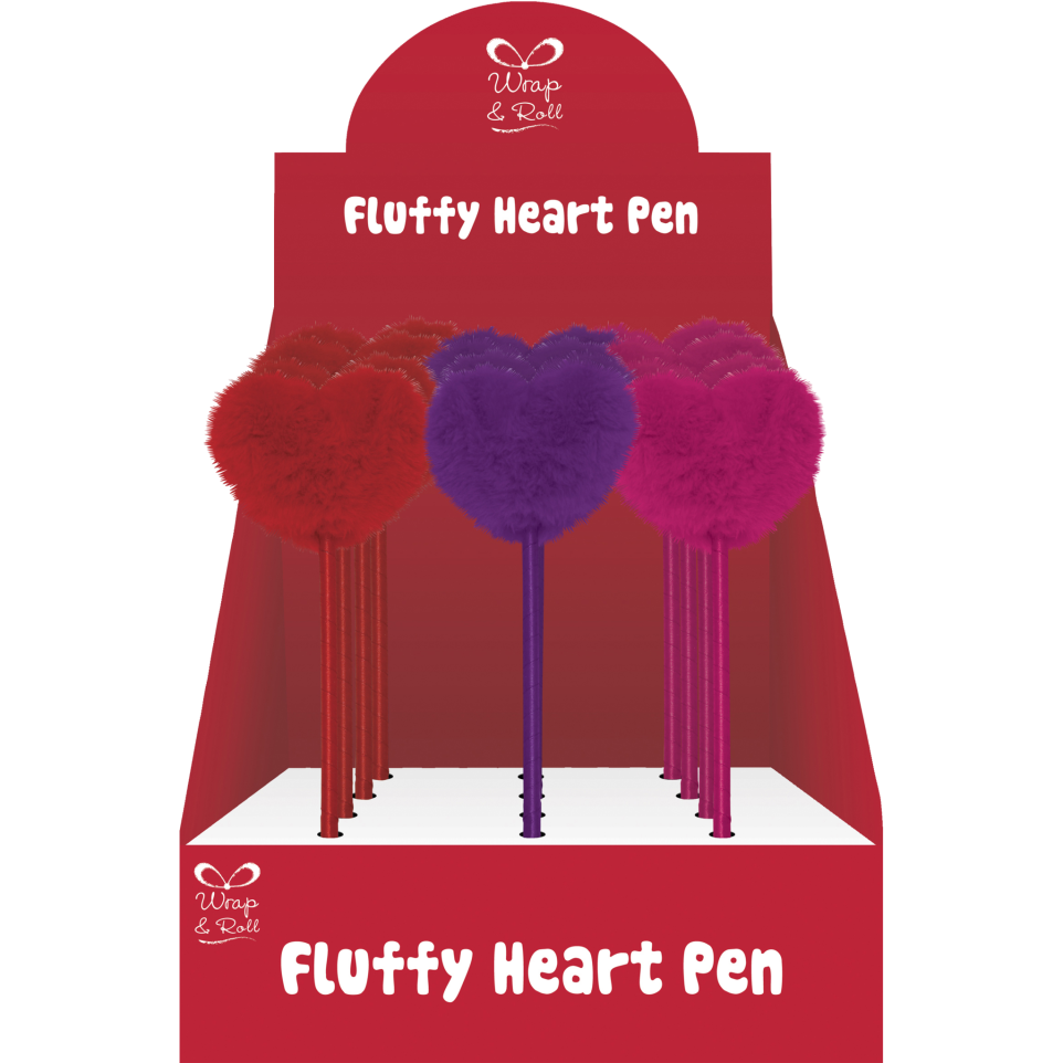 3 ASSORT FLUFFY HEART PENS 72 3 ASSORTED COLOURSX6 PINK, X3 RED, X3 PURPLECDU SIZE: 17.5 X 15 X 21.5CM12PCS PER CDU72PC PER OUTERCDU DISPLAY - REDWRAP AROUND LABEL NEEDED18PC PER CDU