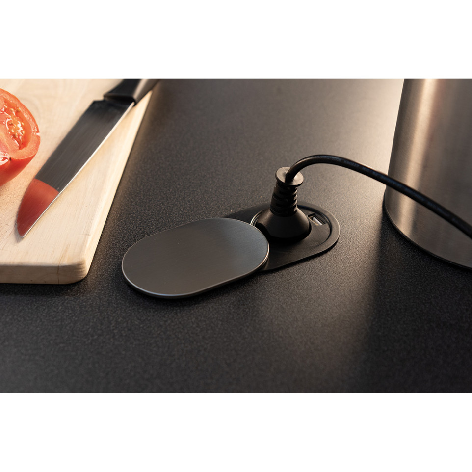 Simply slide open the cover to reveal the outlet and USB port whenever power or charging is needed. When not in use, the unit stays discreetly concealed, preserving the clean lines of your workspace. Installation is designed for standard 60mm recesses, making it suitable for most worktops.