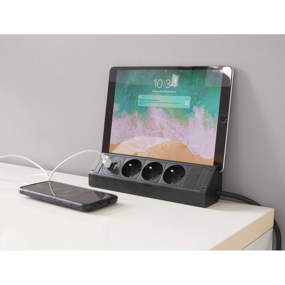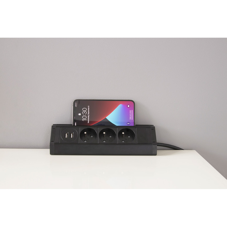 To use the Multiprise Mount, simply place it on your worktop and adjust the retractable mechanism to the desired height. Plug in your devices and charge them using the provided USB ports. When not in use, retract the socket to keep your workspace organized.