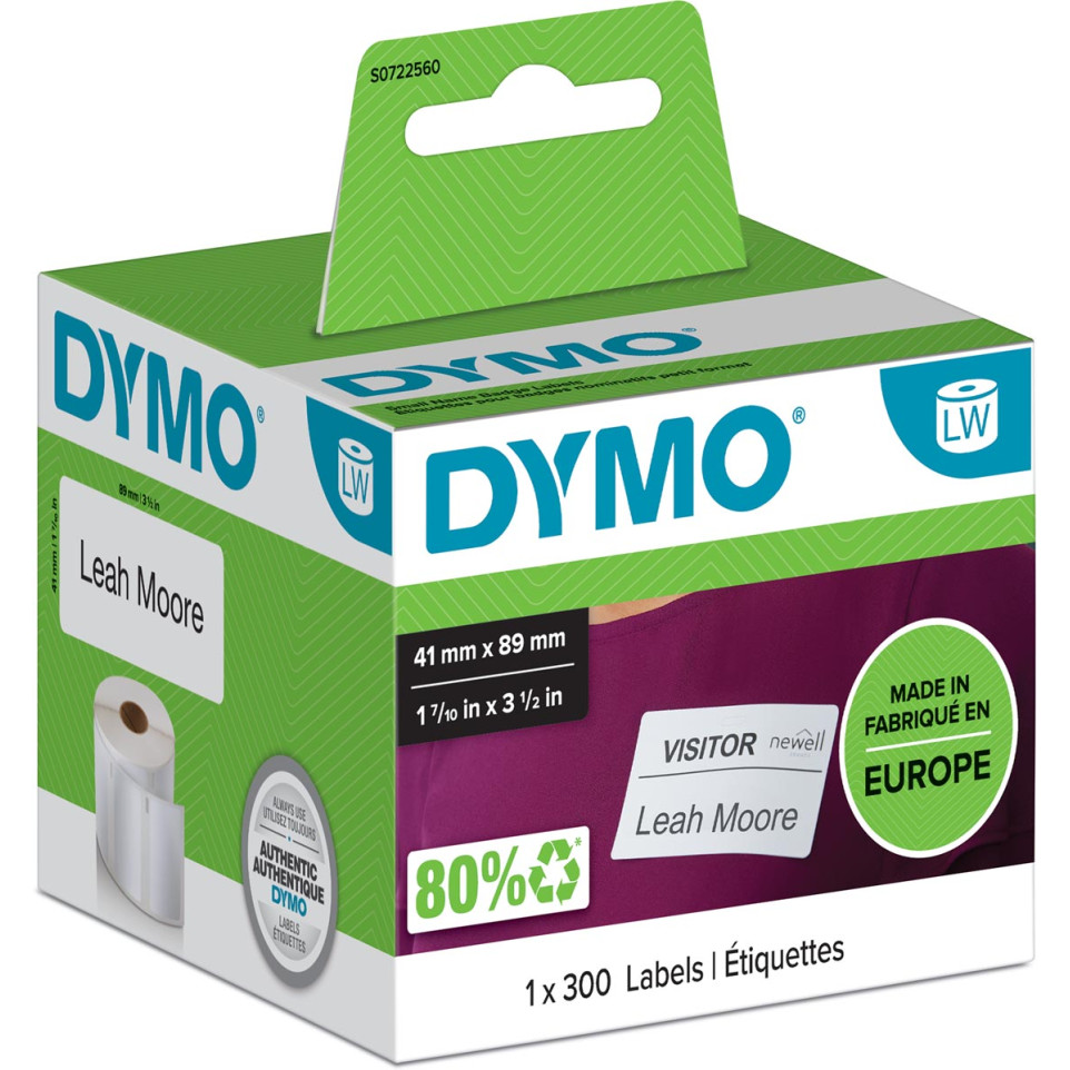 Dymo LabelWriter removable labels are designed for efficient and flexible labeling, offering a size of 89 x 41 mm. Ideal for creating name badges or address labels, each roll contains 300 white paper labels for professional and versatile use in office environments.