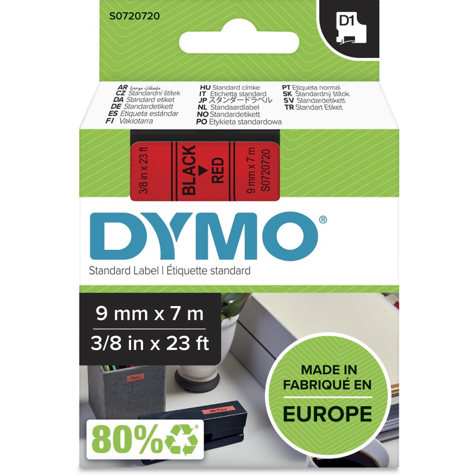 The Dymo D1 9 mm black on red ribbon is designed for clear and durable labeling in office, workshop, or home environments. It is ideal for marking files, storage boxes, equipment, shelving, and cables with high visibility.
