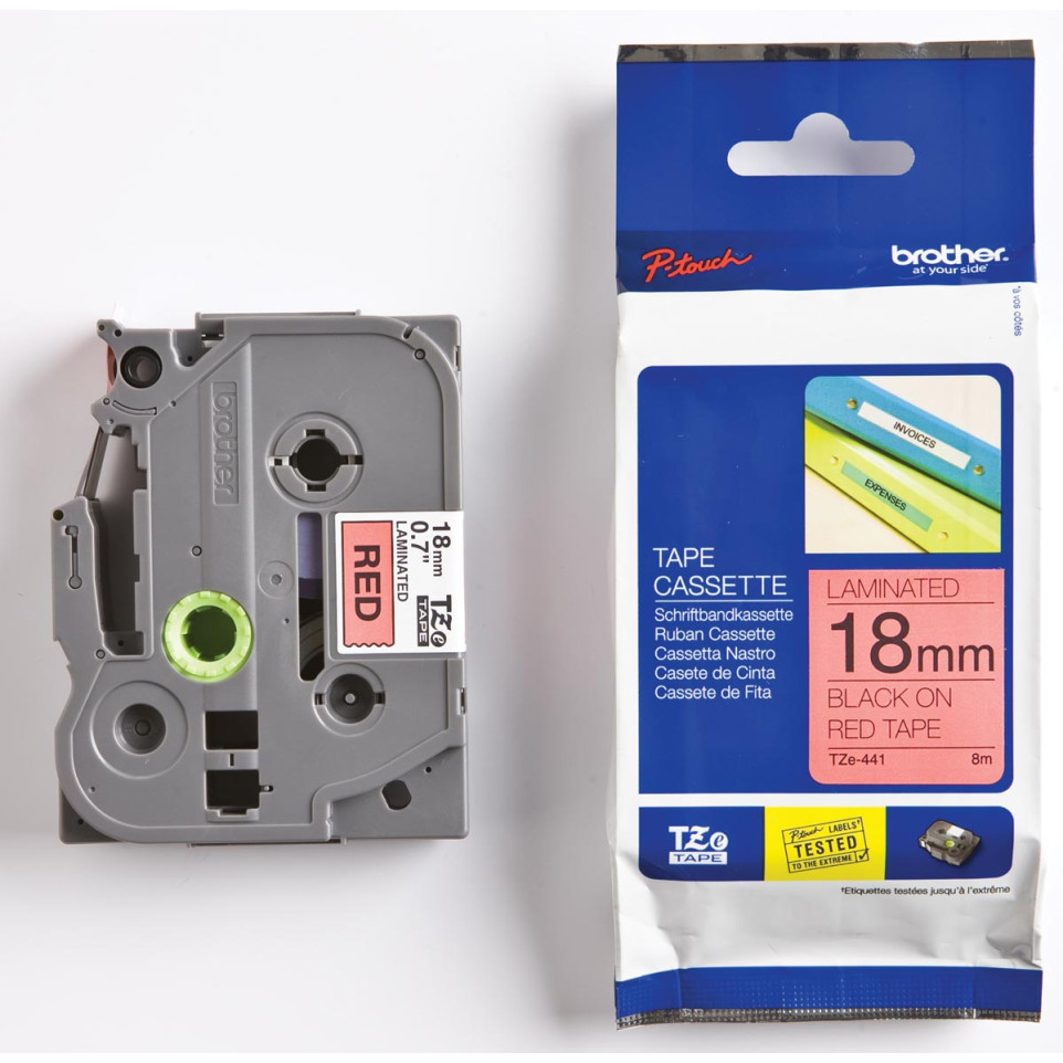 This Brother TZe ribbon for P-Touch creates durable, black-on-red labels ideal for organizing files, marking equipment, or identifying supplies in offices, schools, warehouses, and at home.