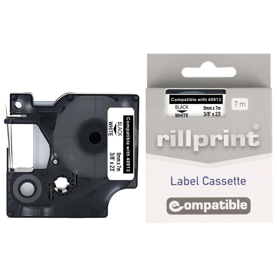 Rillprint D1 Label Tape Compatible with Dymo 40910 Black on Clear 9mm