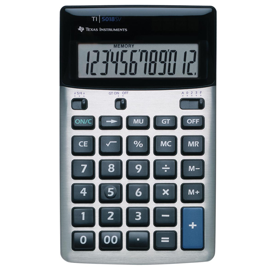 The Texas Instruments TI-5018 SV is a desktop calculator designed for everyday office tasks, equipped with a 12-digit SuperView display, an easy-to-use keypad, and versatile functions for quick and accurate calculations.